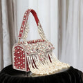 Designer Pearl  Crystal  Clutch - Rani Pink