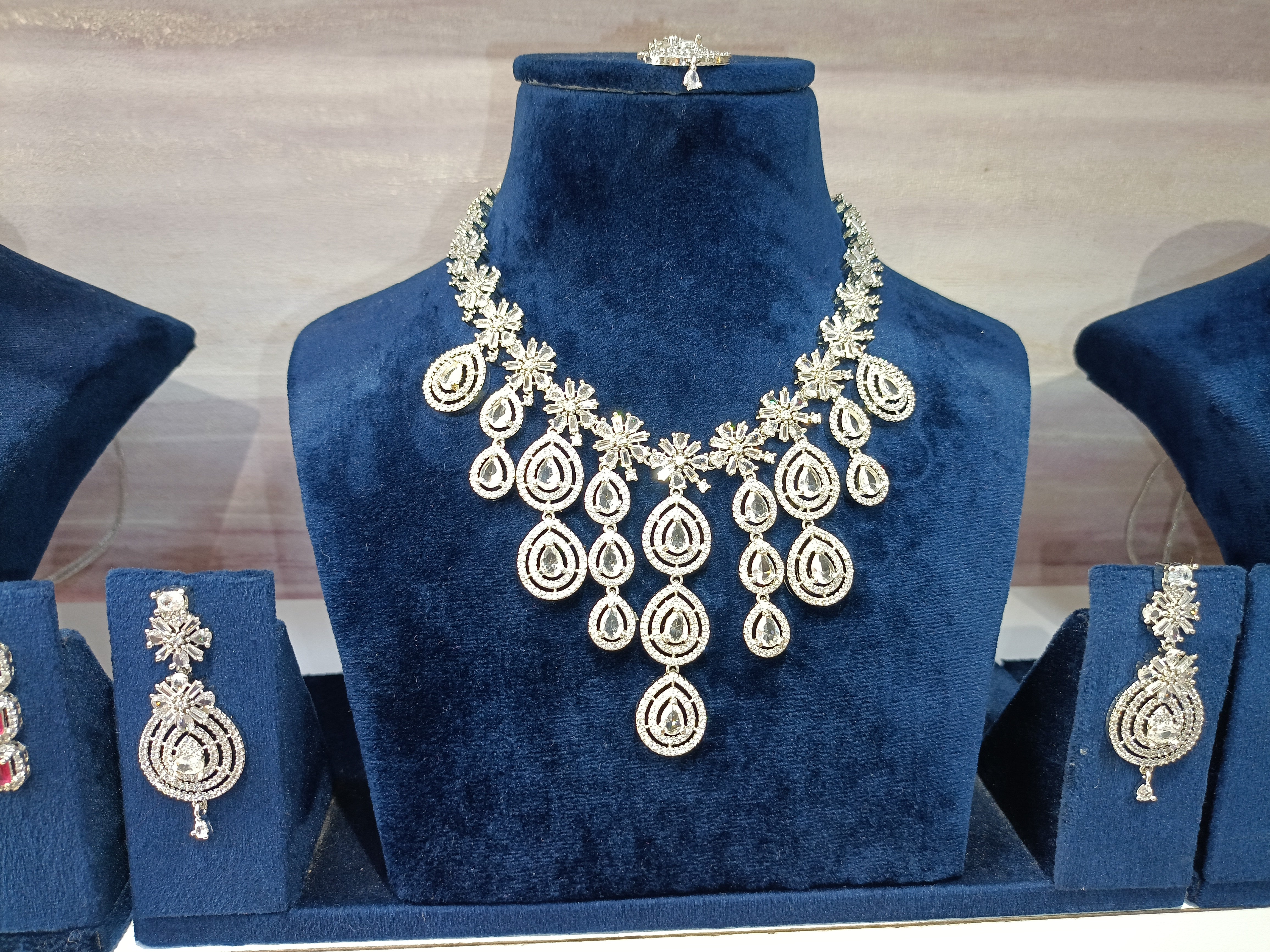 Tanvi American Diamond Choker Set With Mangtika- Royal Blue