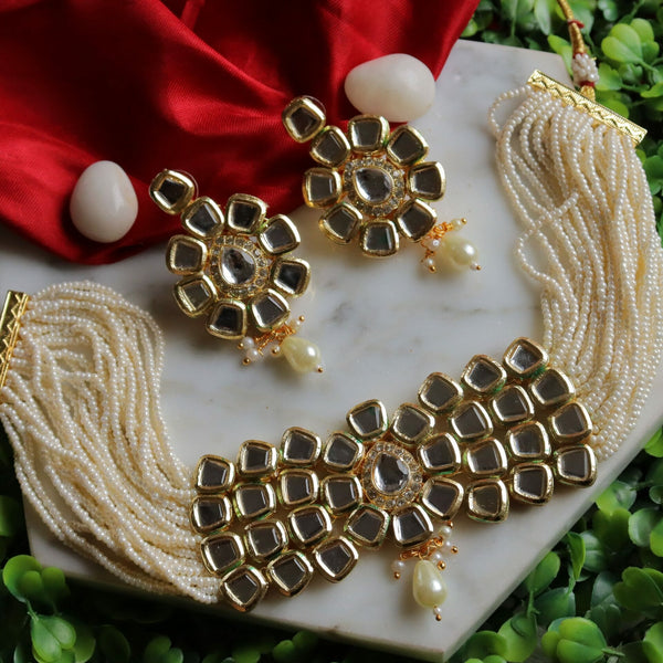 Shanaya Mirror Finish Kundan Choker - Cream