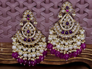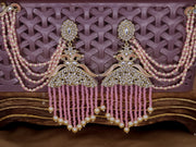 Amna Peacock Earrings With Kanchain - Baby Pink