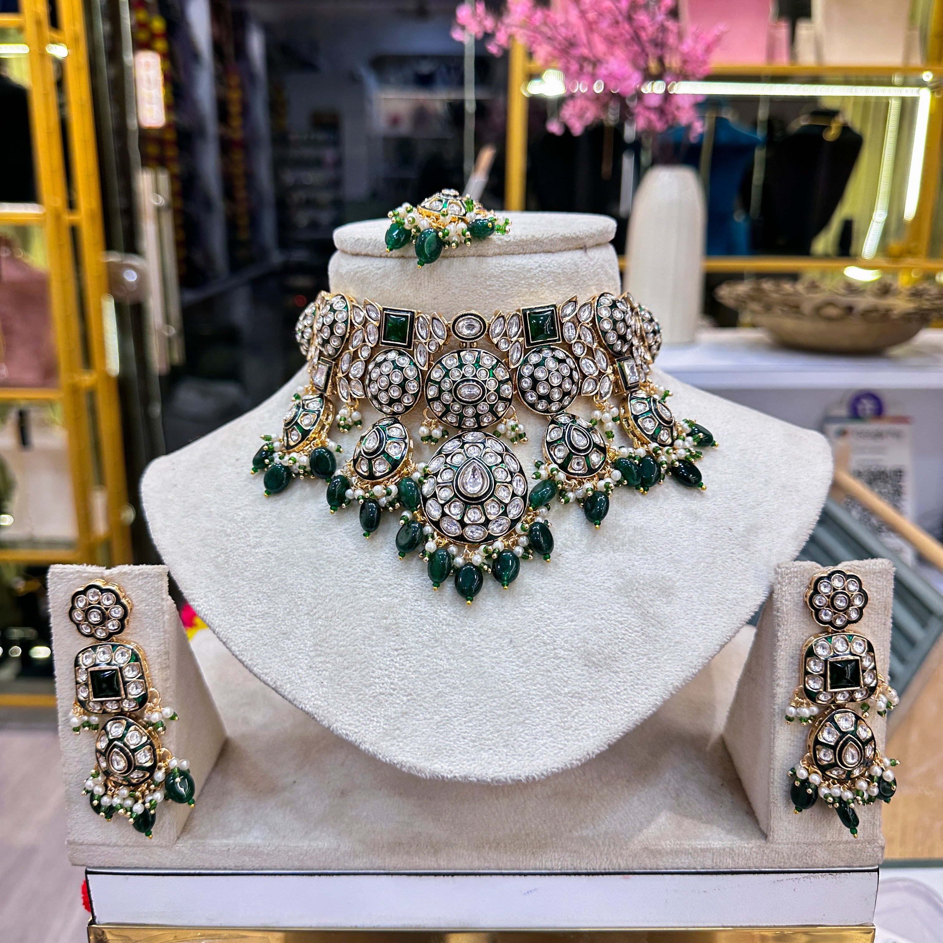 Niharika Semi Bridal Necklace Set (Nacklace, Earrings, Sheeshphool, Nath
