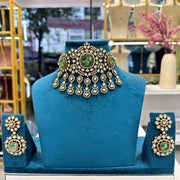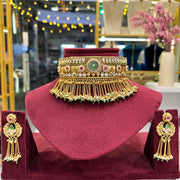 Pre Order - Sufi Semi Bridal Kundan Choker - Dark Green