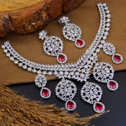 Nimrat Semi Bridal Choker Set With Jhumka + Teeka - Maroon