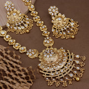 Nimrat Semi Bridal Choker Set With Jhumka + Teeka - White