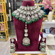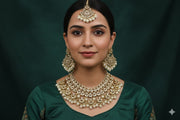 Nimrat Semi Bridal Choker Set With Jhumka + Teeka - Green