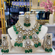 Maleeha Kundan Polki Semi Bridal Necklace - Green
