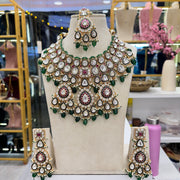 Maleeha Kundan Polki Semi Bridal Necklace - Ruby Green