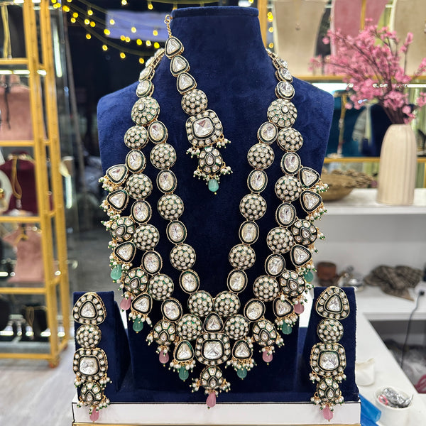 Bindya Kundan Polki Semi Bridal Necklace - Pink Mint